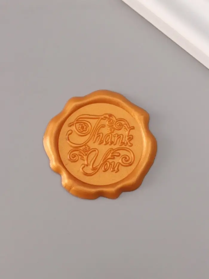 Сургучный оттиск «Спасибо» – идеальное украшение для приглашений, конвертов и сертификатов. Выполненный из восхитительного золотистого сургуча, он добавит изысканности вашим письмам и документам. Отлично подходит для оформления любых событий и важных посланий. Размер оттиска – 3 см, что обеспечивает выразительность и чёткость даже самых мелких деталей.