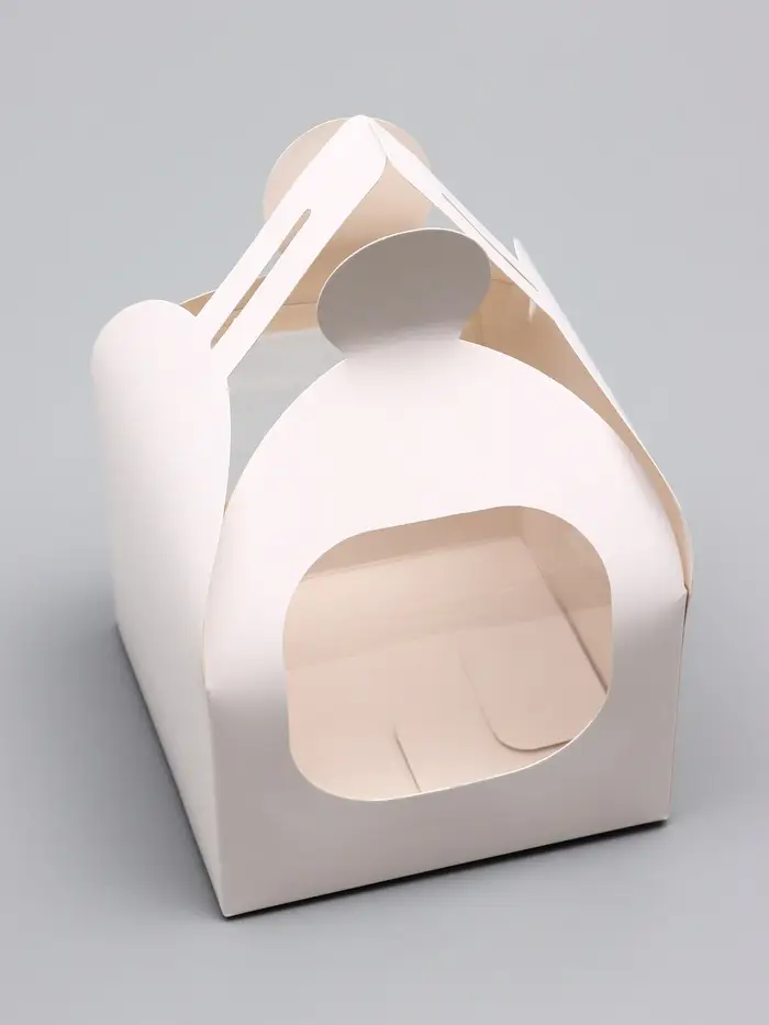 - Эффектная подача: Прозрачное окно демонстрирует торт, сохраняя его свежесть. Плотный картон 250 г/м² надежно защищает нежный десерт при транспортировке.