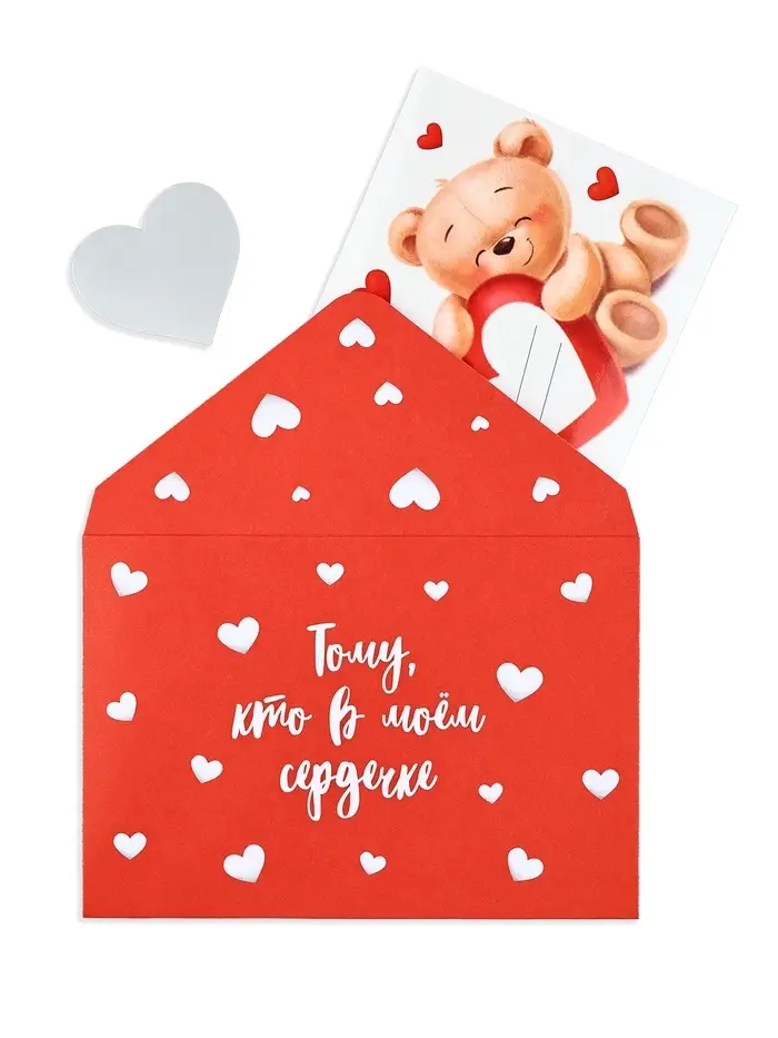 Конверт со скретч-наклейкой и открыткой «В моём сердечке», 10 х 15 см