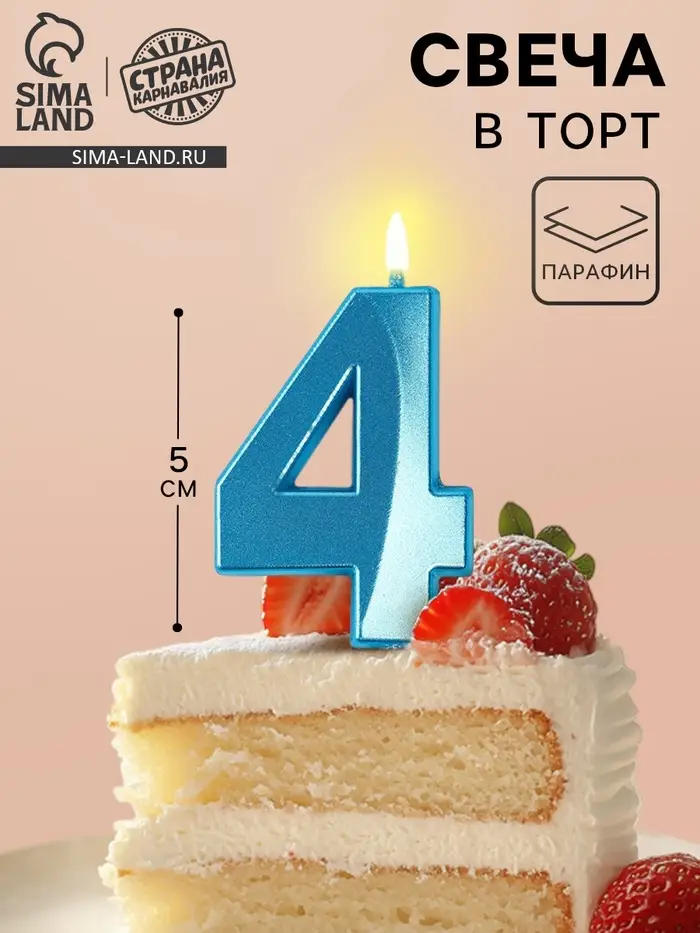 Свеча в торт на шпажке «Грань», цифра 4, голубая, 5 см