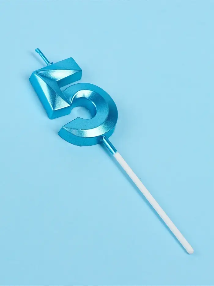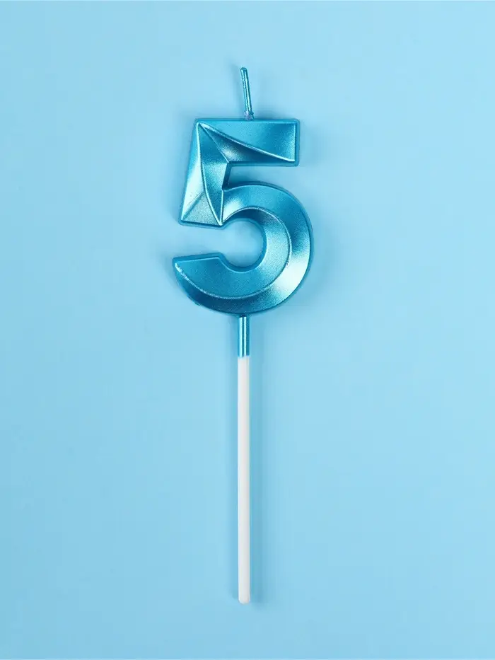 Свеча в торт на шпажке «Грань», цифра 5, голубая, 5 см