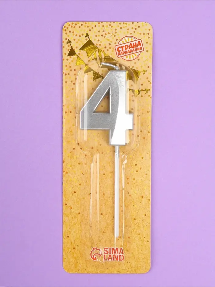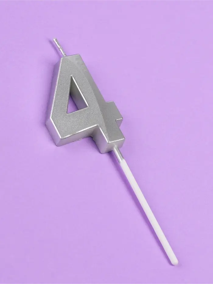 Свеча в торт на шпажке «Грань», цифра 4, серебро, 5 см