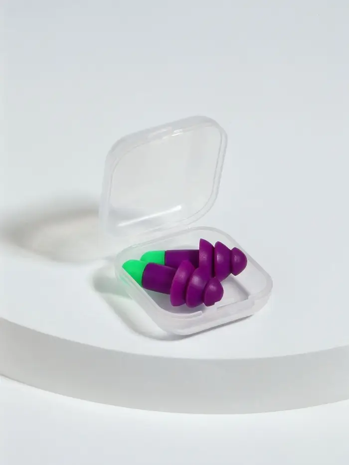 Силиконовые беруши размером 3×1.3 см в футляре — практичное решение для комфортного сна и защиты от шума. Каждая пара выполнена в спокойных фиолетовых и зелёных тонах, что делает их не только функциональными, но и эстетичными.
