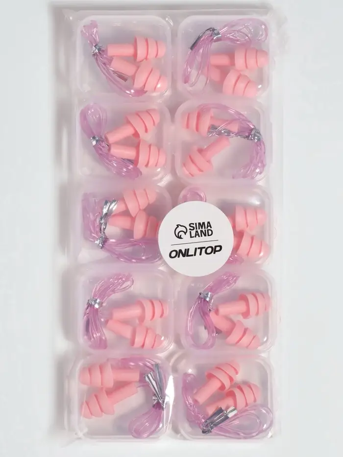 Беруши на шнурке, 3×1.5 см, в футляре, фасовка 10 шт., силиконовые, розовые