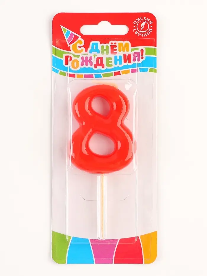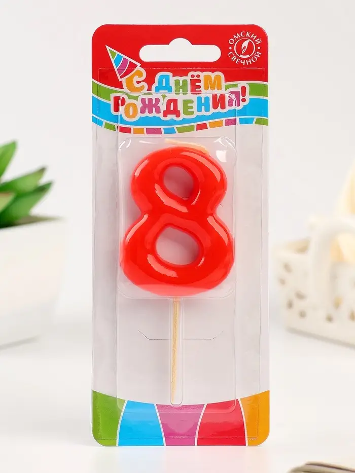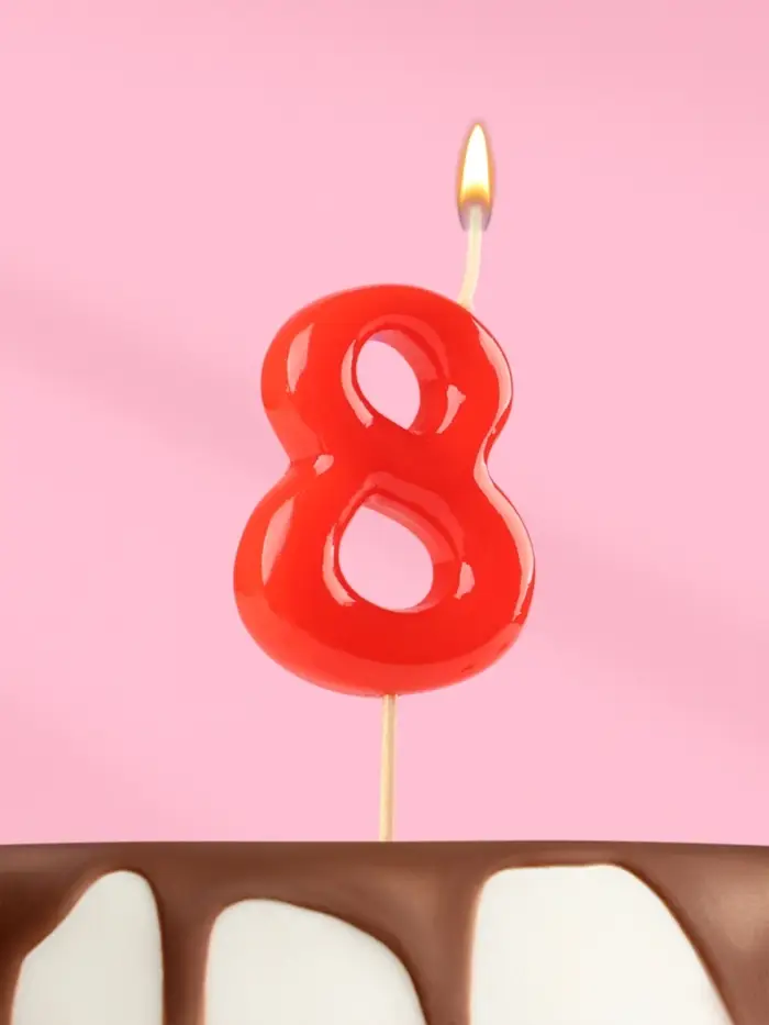 Свеча в торт «Красная», цифра 8
