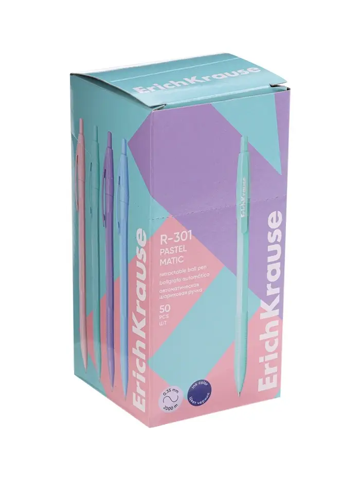 Ручка шариковая автоматическая, ErichKrause R-301 Matic Pastel, 0.7 мм, синяя
