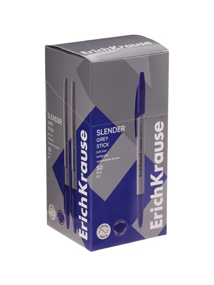 Ручка шариковая ErichKrause Slender Stick Grey, Super Glide, 0.7 мм, синяя