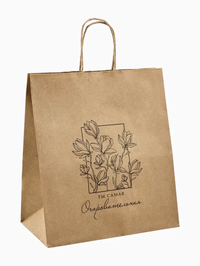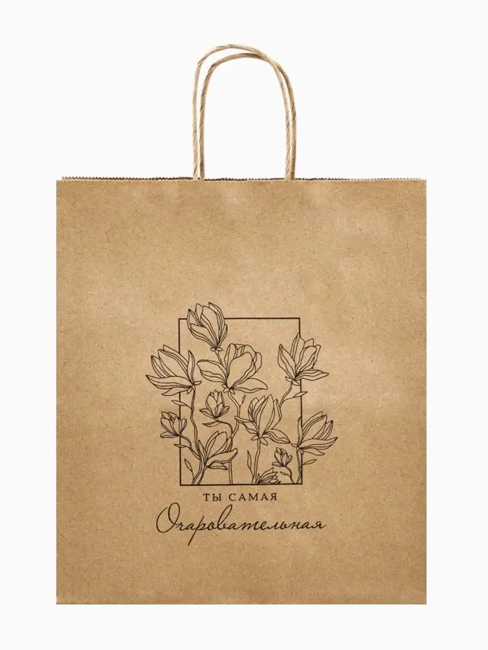 Пакет подарочный крафтовый «Цветочный» 22 х 25 х 12 см