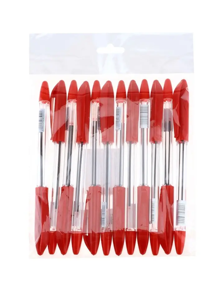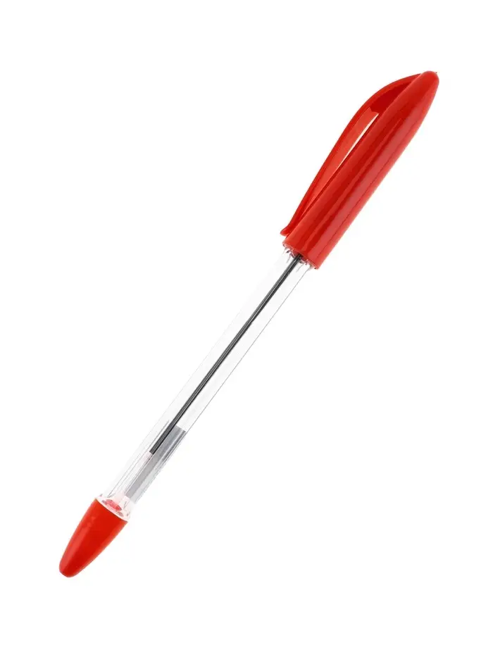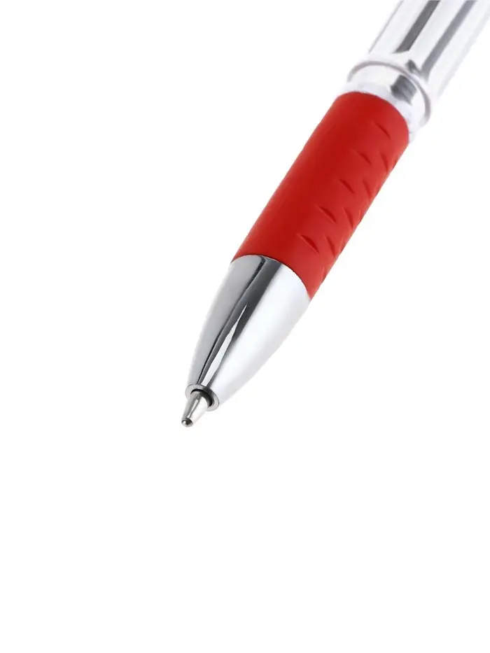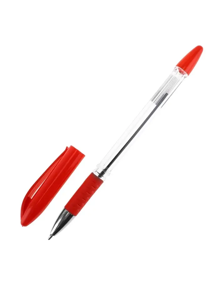 Ручка шариковая 0.5 мм красная, корпус прозрачный с резиновым держателем