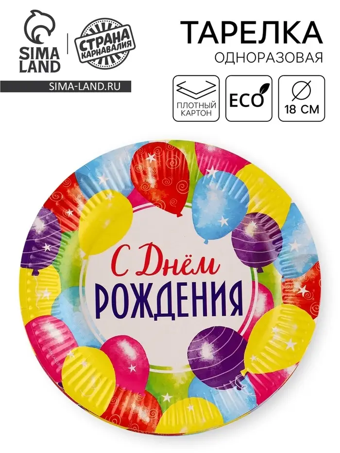 Тарелка одноразовая бумажная «С Днём рождения», 18 см