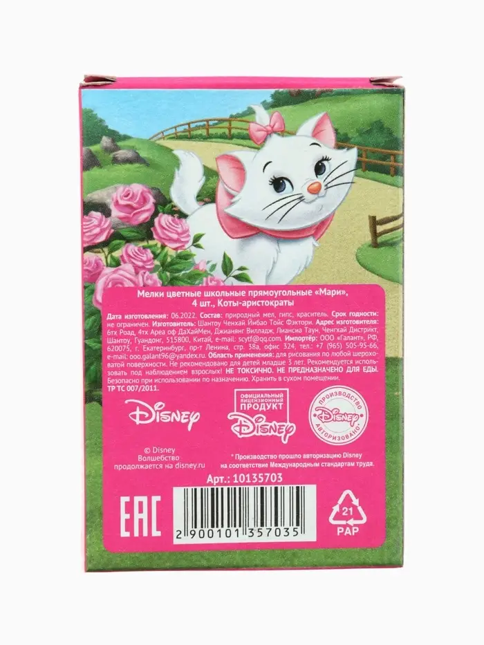Мелки цветные школьные, 4 шт., Коты аристократы, прямоугольные