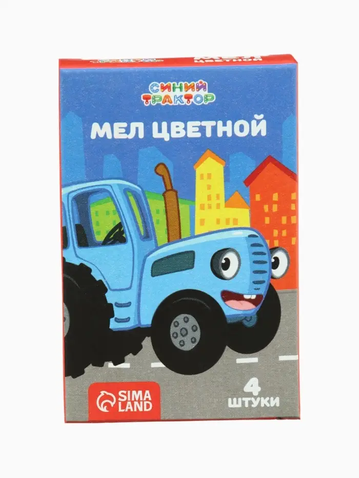 Мелки цветные школьные, 4 шт. «Синий трактор», прямоугольные