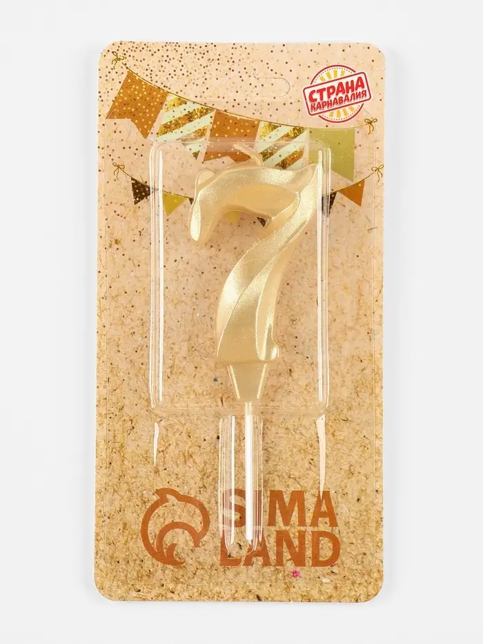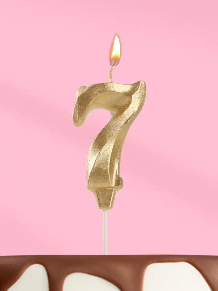 Свеча в торт «Театральная», цифра 7, золотой металлик