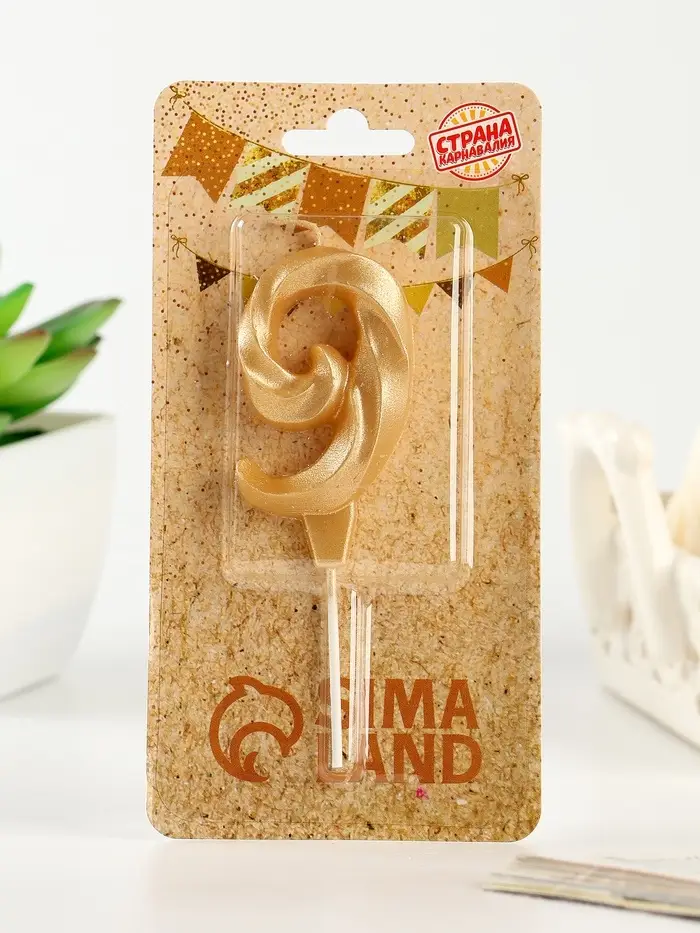 Свеча в торт «Театральная», цифра 9, золотой металлик