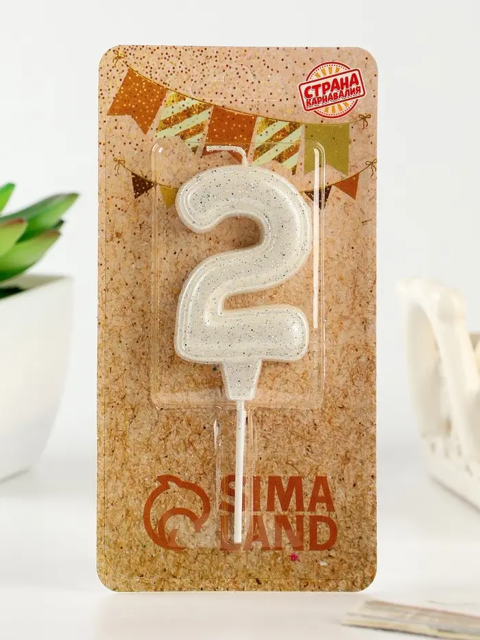 Свеча в торт «Праздник» цифра 2, жемчужный перламутр с блестками