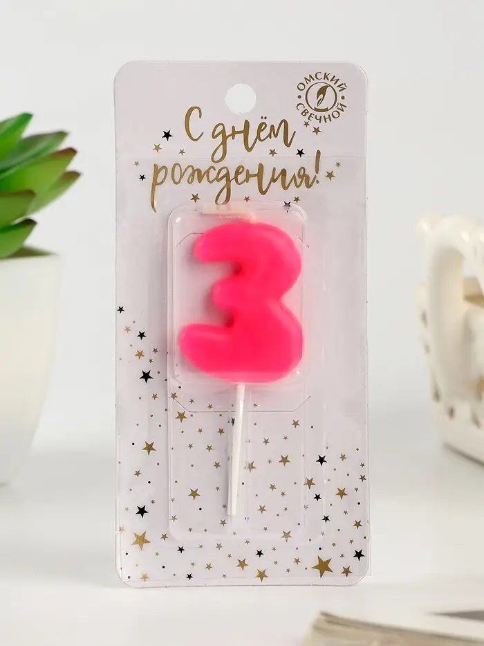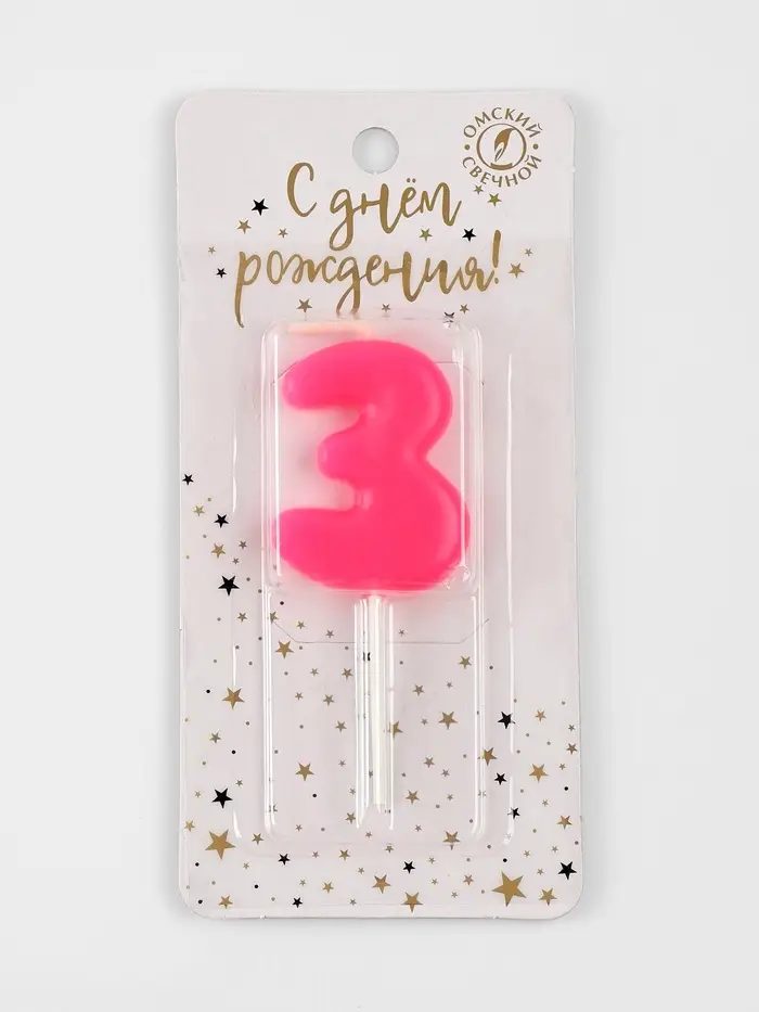 Свеча для торта «Неоновая», цифра 3, розовая