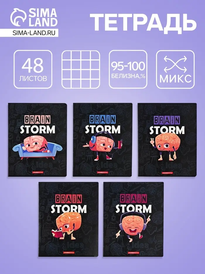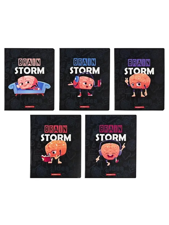 Тетрадь 48 листов, в клетку «Мозговой штурм», мелованный картон, МИКС