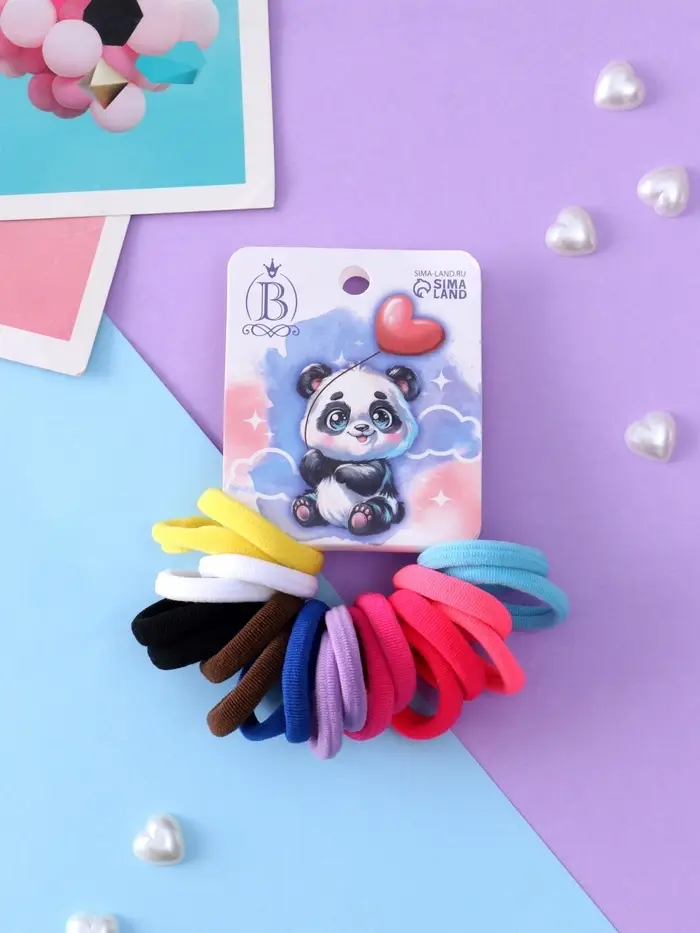 Резинка для волос «Панда», набор 20 шт., шарик-сердце, 2.5 см, МИКС
