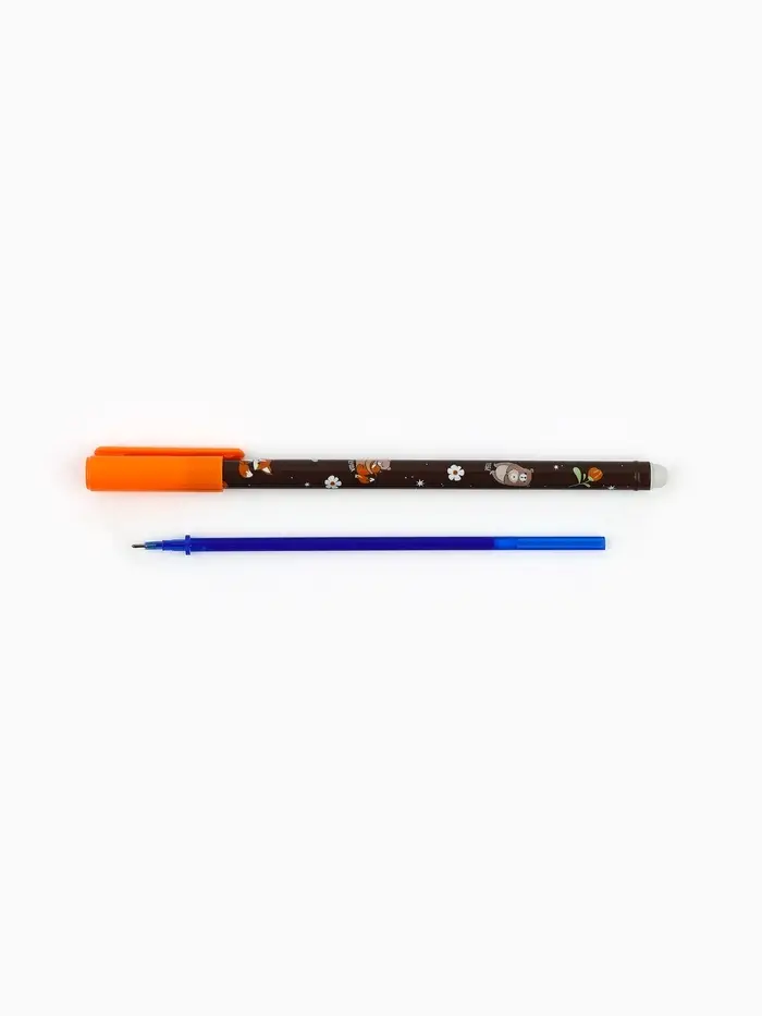 Ручка пиши-стирай с колпачком «Медвежонок и лисёнок», синяя паста, гелевая 0.5 мм