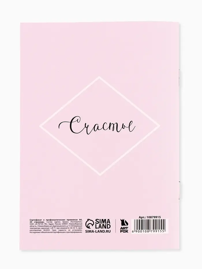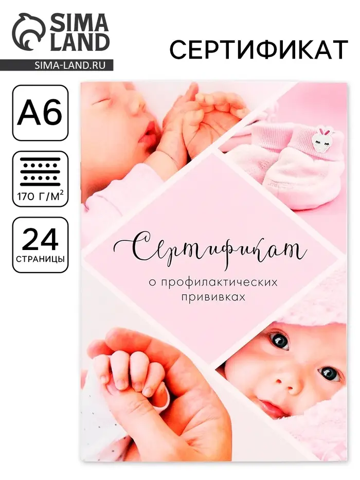 Сертификат о профилактических прививках А6, 24 страницы 10.5×14.8 см «Девочка»