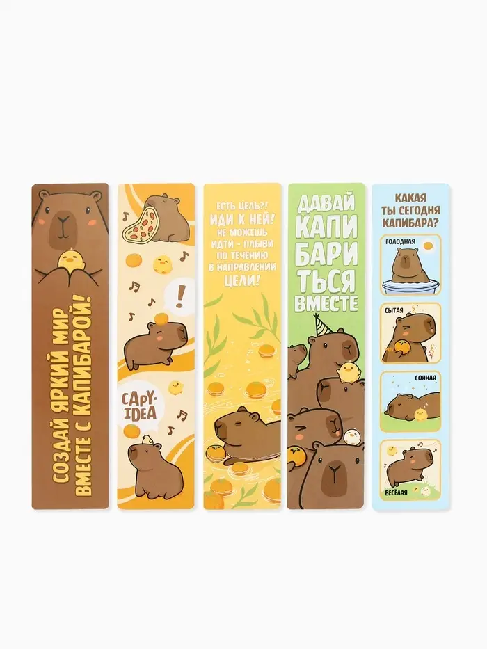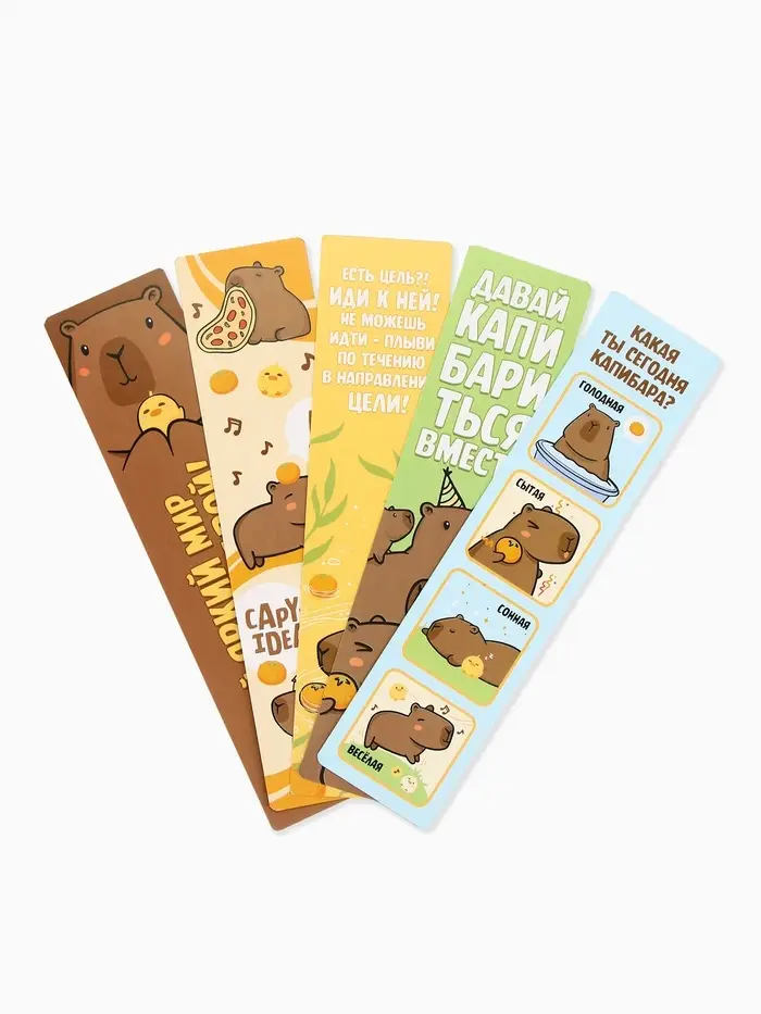 Закладки для книг картонные 5 шт., шпаргалки «Капибара»