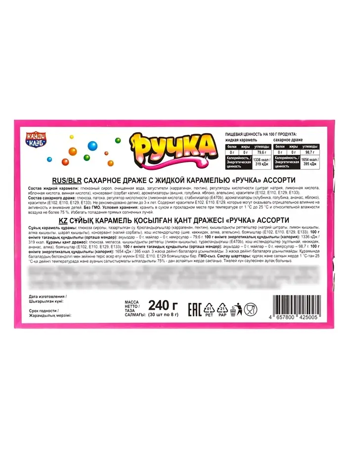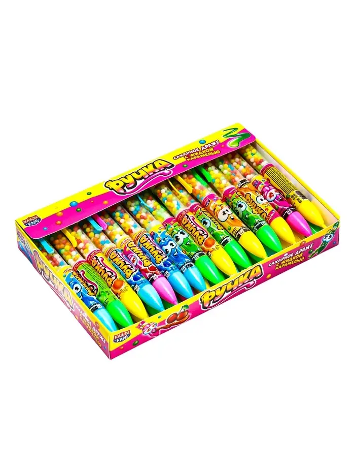 Сахарное драже с жидкой карамелью «Ручка» ассорти 8г*30шт*12