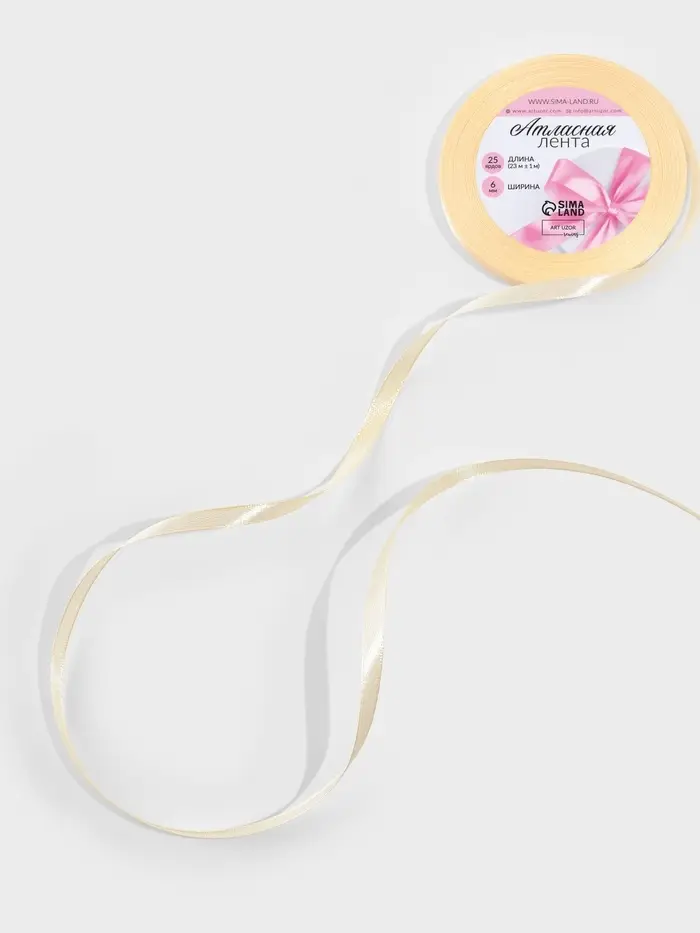 Лента атласная, 6 мм, 23±1 м, светло-бежевая №02