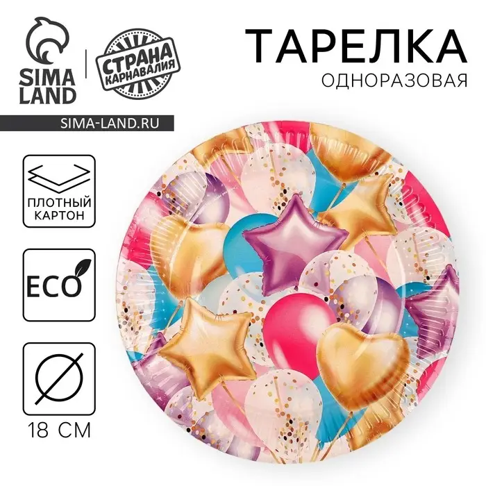 Тарелка одноразовая бумажная «Воздушные шарики», набор 6 шт., 18 см