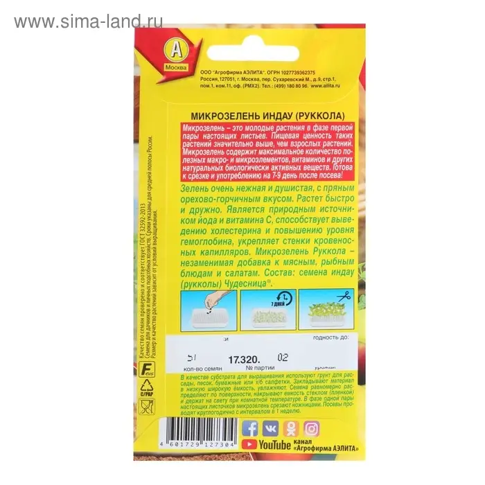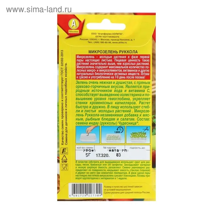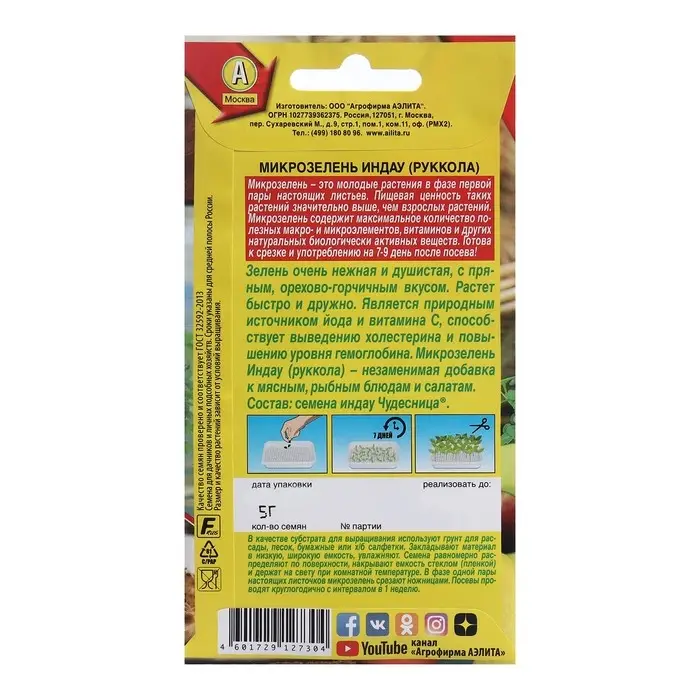 Семена Микрозелень Руккола, 5 г