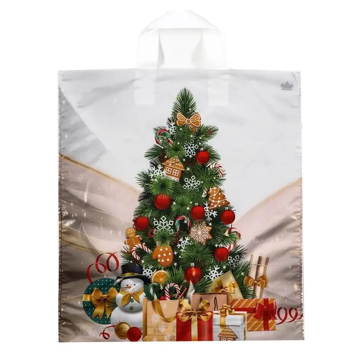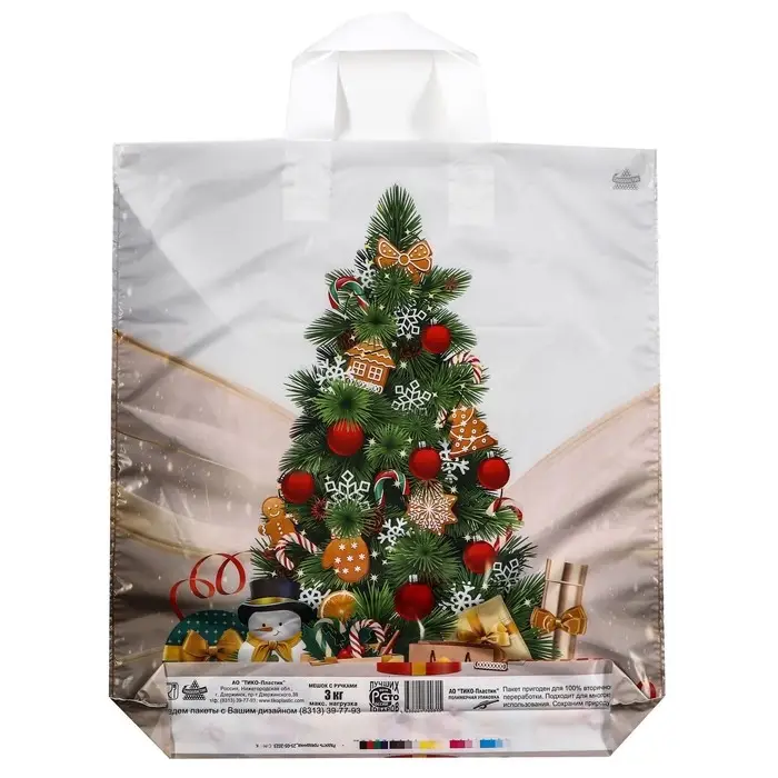 Пакет полиэтиленовый с петлевой ручкой, прочный с оригинальным рисунком.