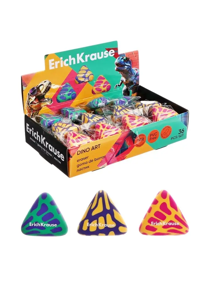 Ластик ErichKrause Dino Art, 28×26×10 мм, МИКС