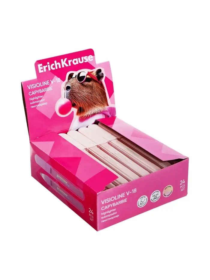 Маркер текстовыделитель 0,5-4,5мм ErichKrause Visioline V-18 CapyBarbara, 3 цв, микс, дисплей 108886