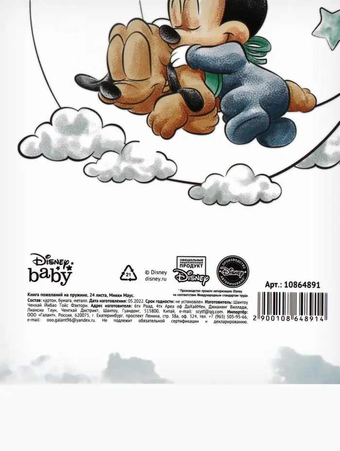 Книга пожеланий на пружине, 21,7х21 см, Микки Маус