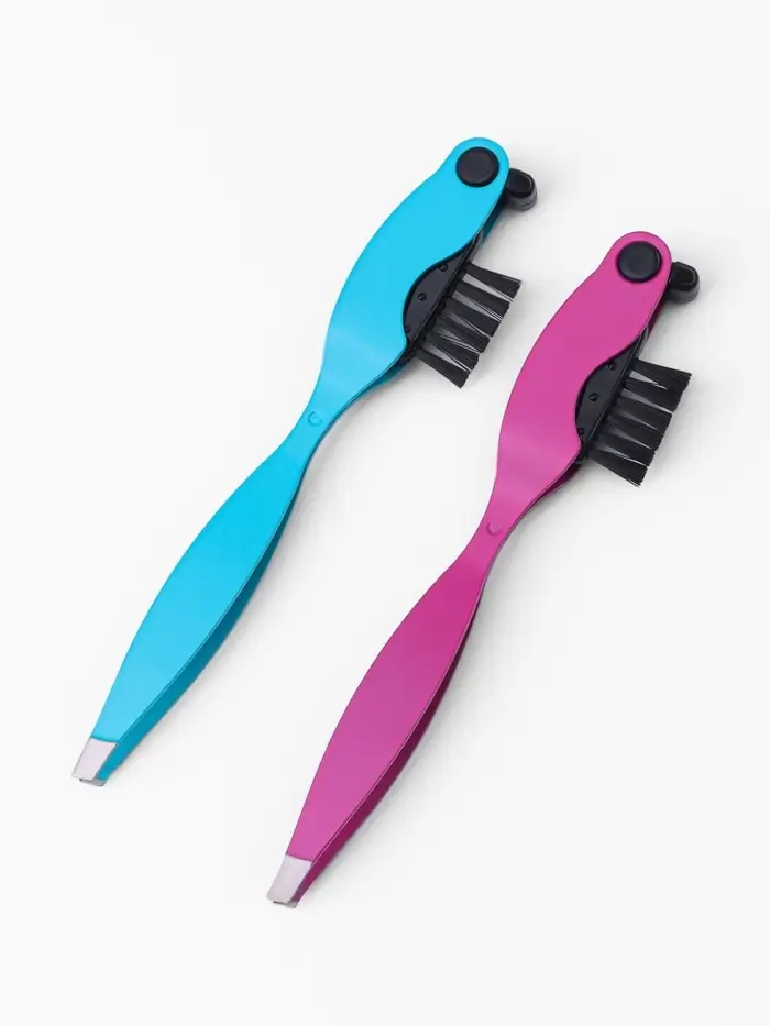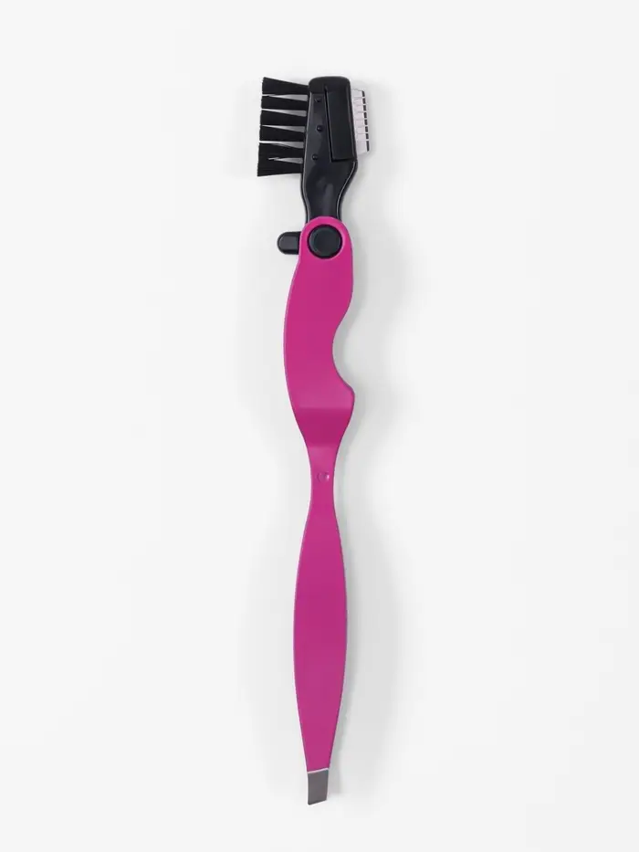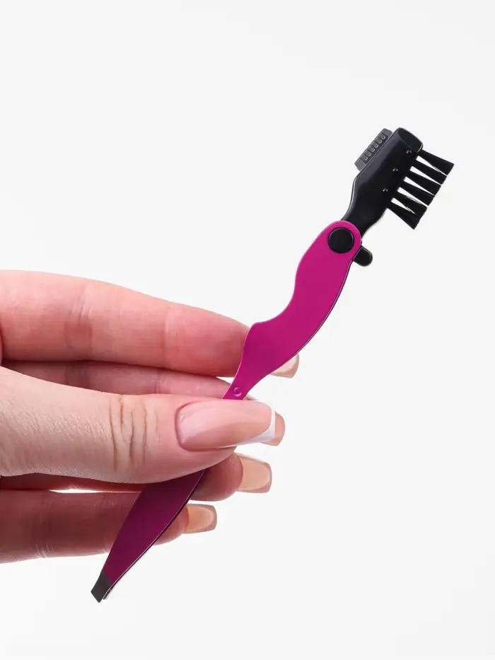 Щеточка и пинцет д/бровей и ресниц складная 10,5см металл/пластик МИКС пакет QF