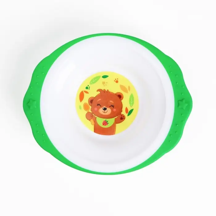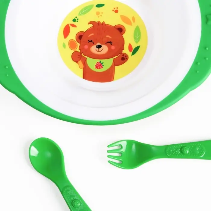 Комплект подходит для малышей, которые учатся кушать самостоятельно. Пластиковая посуда не бьётся и имеет небольшой вес. Её яркий дизайн непременно понравится крохе. Товар изготовлен из безопасного пластика. Качество подтверждается сертификатом соответствия ЕАС. Рекомендовано для детей с 5 месяцев.