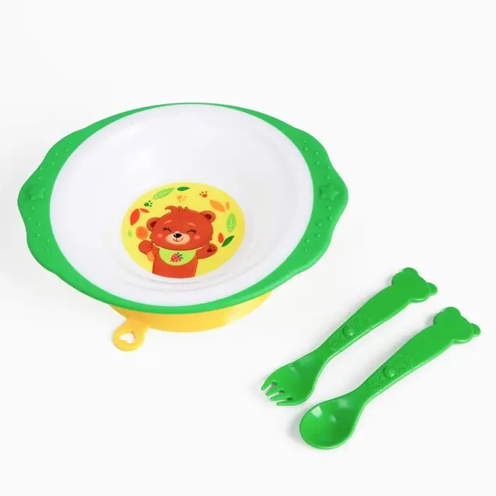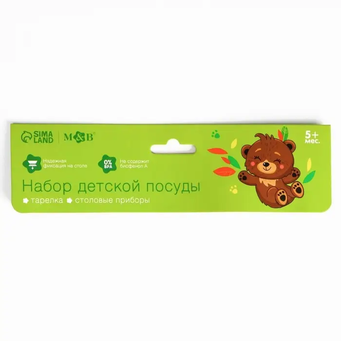 Тарелка M&B «Медвежонок», тарелка на присоске 250мл, в наборе вилка, ложка