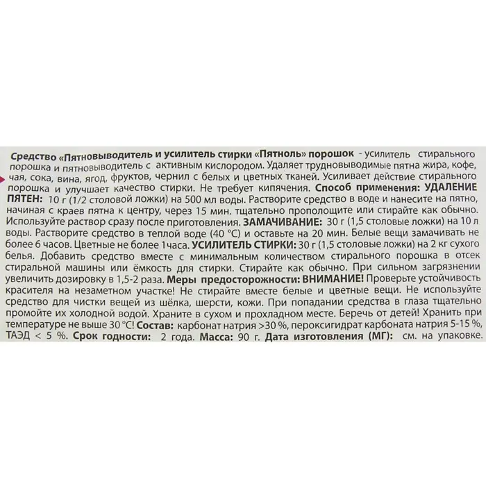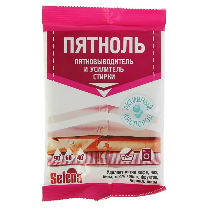 Пятновыводитель и усилитель стирки Selena «Пятноль» предназначен для отбеливания, удаления пятен, антимикробной обработки всех видов белья как при ручной стирке, так и при стирке в стиральной машине.