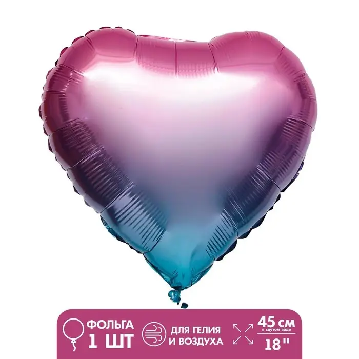 Шар воздушный фольгированный 18" «Сердце», цвет розовый