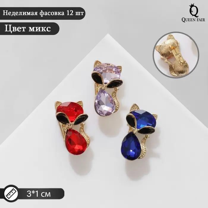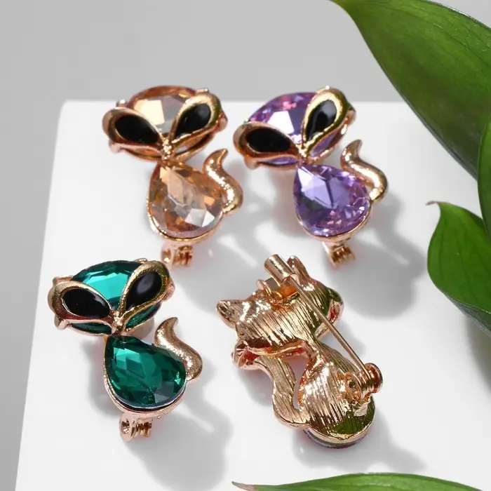 Брошь «Кошечка» драгоценная, цвет МИКС (неделимая фасовка 12 шт., цена за шт.)