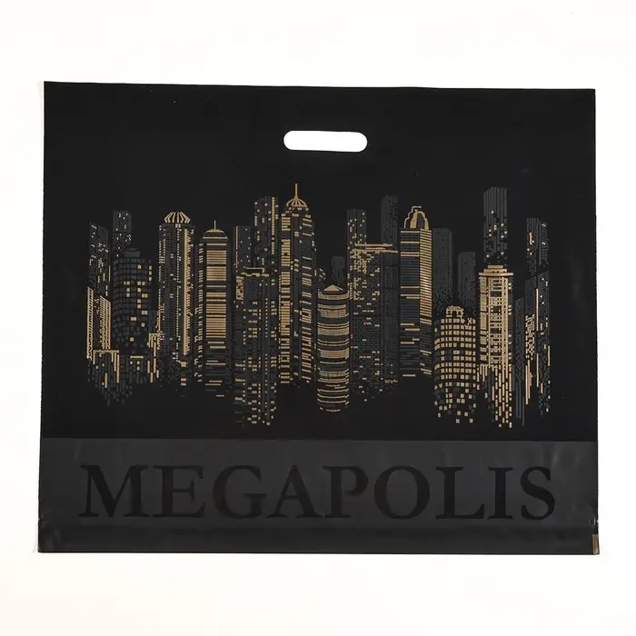 Пакет «Мегаполис» черная, полиэтиленовый с вырубной ручкой, 60×50 см, 70 мкм
