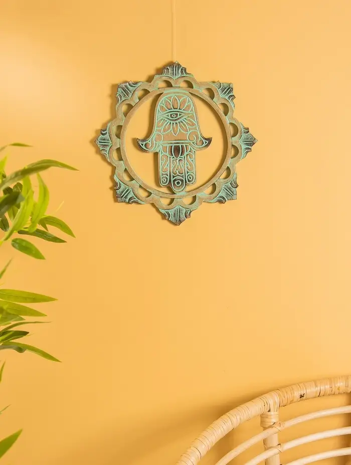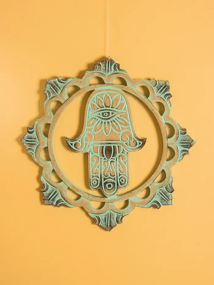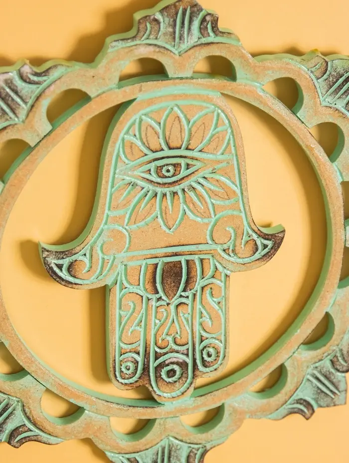 Панно "Хамса" МДФ, 30х30х1 см, цв. бежево-бирюзовый
