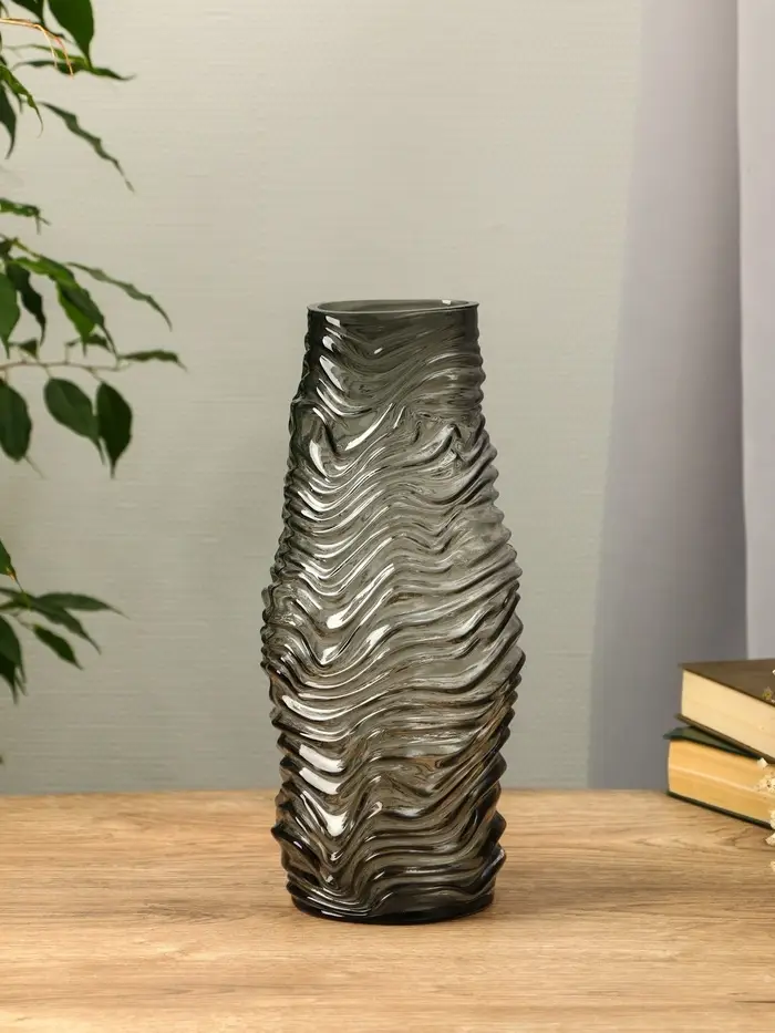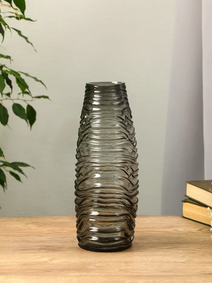 Ваза стекло настольная "Ванесса" полосы, 30х12 см, серый