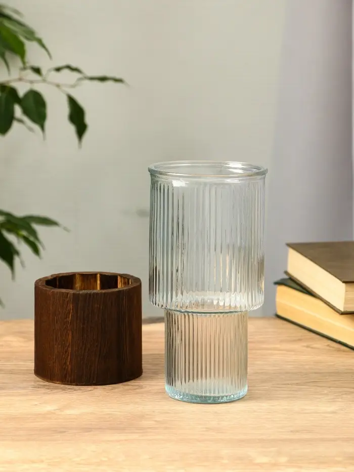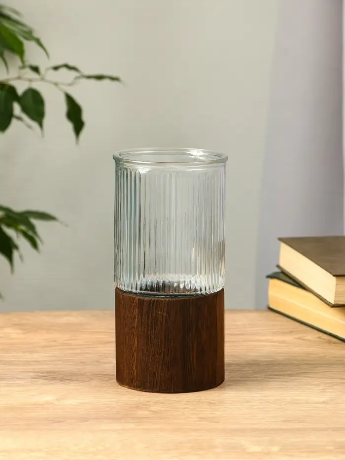 Ваза стекло настольная "Лесли" линии, 20х10 см, прозрачный