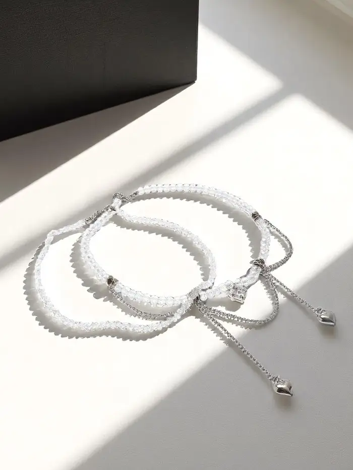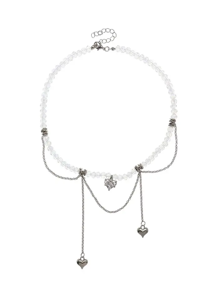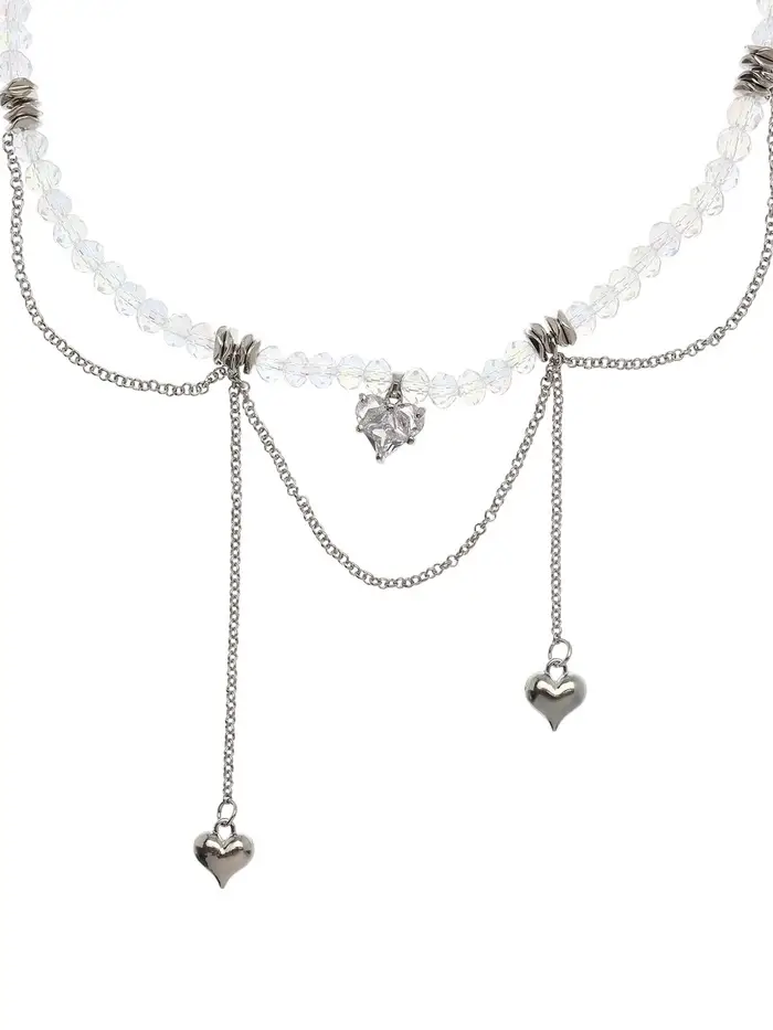 Колье "Акцент" сердце, двойное, цвет белый в серебре