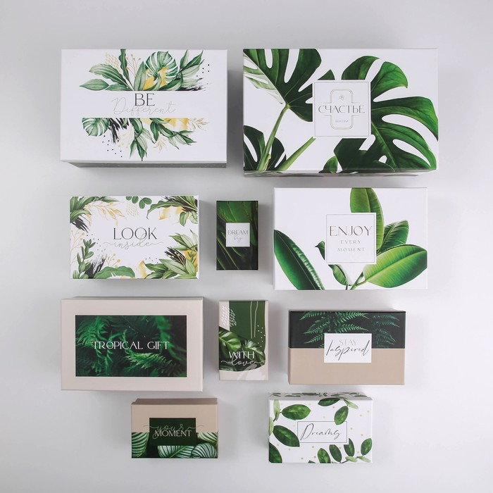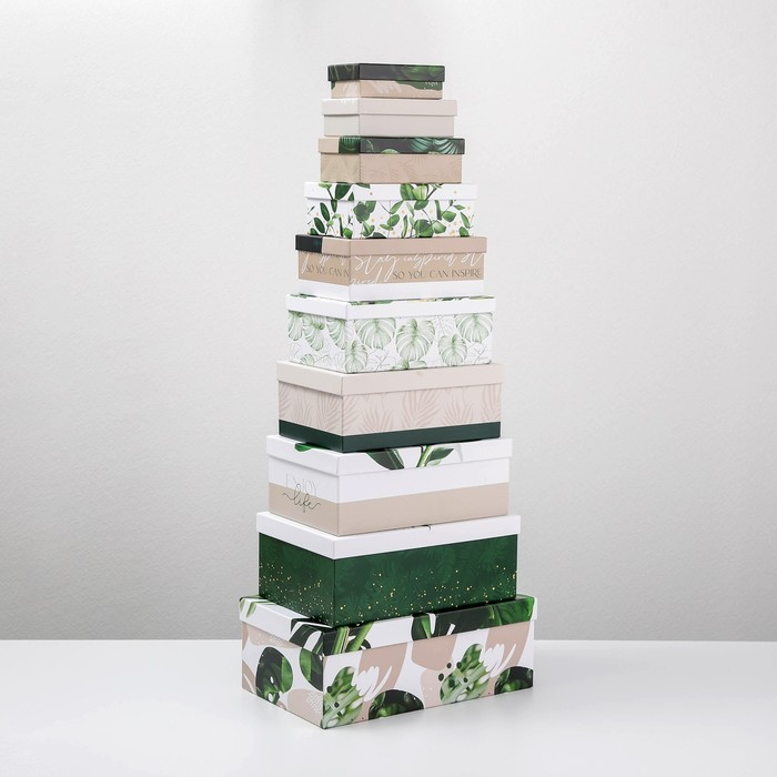Набор коробок 10 в 1, упаковка подарочная, «GREEN», 12 х 7 х 4 - 32.5 х 20 х 12.5 см