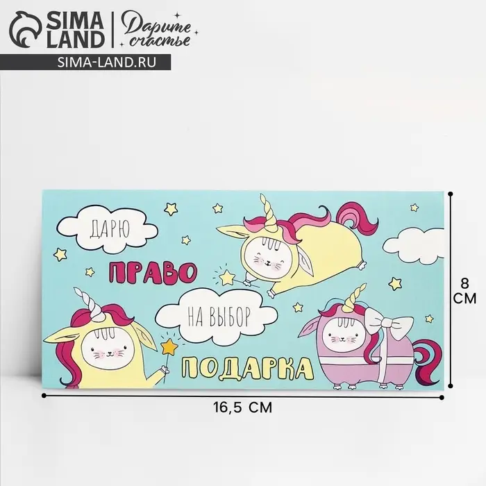 Конверт для денег «Дарю право на выбор подарка», 16.5 × 8 см