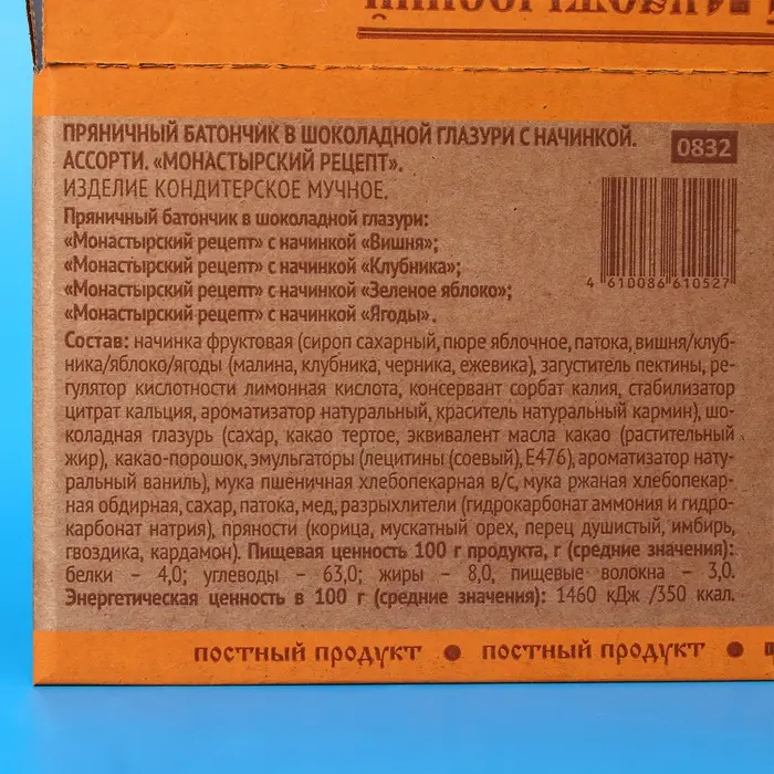 Пряничный батончик «Монастырский рецепт» в шоколадной глазури, ассорти, 40 г