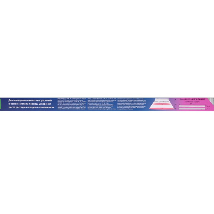 Фитосветильник светодиодный Uniel, 18 Вт, 560 мм, IP40, 230 В, спектр для рассады, с выкл.