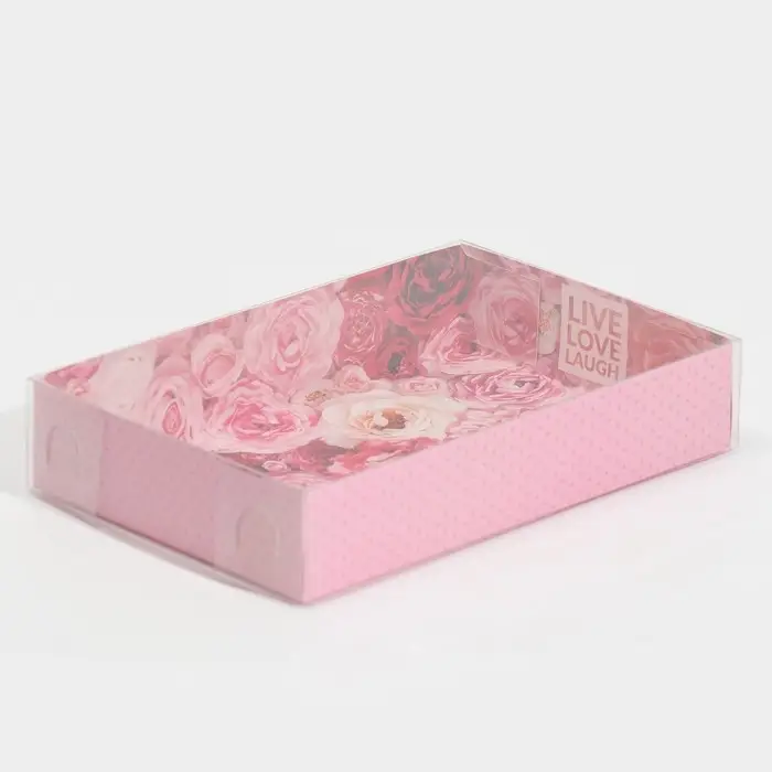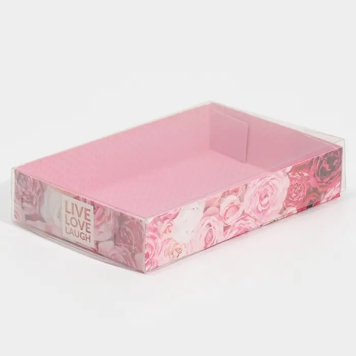 Кондитерская упаковка, коробка для макарун с PVC крышкой, Live Love Laugh, 18 х 12 х 3.5 см