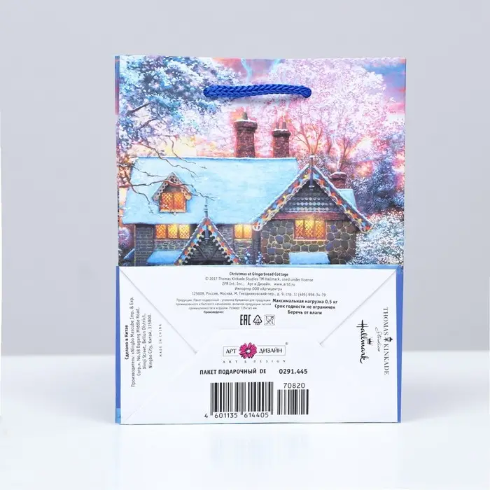 Новогодний подарочный пакет с ярким, красочным рисунком создаст праздничное настроение.